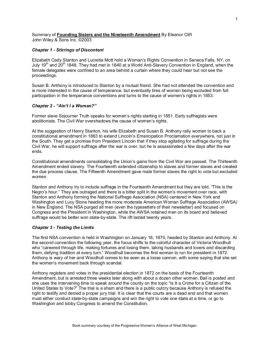 2 Book summary courtesy of the Progressive Women’s Alliance of West Michigan. Chapter 4 - Passing the Torch Stanton and Anthony crisscross the country, speaking ...