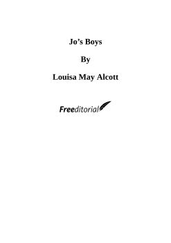 Jo's Boys, and How They Turned Out: A Sequel to "Little Men" is a novel by American author Louisa May Alcott, first published in 1886. The novel is the final book in the unofficial Little Women series. In it, Jo's children, now grown, are caught up in real world troubles.