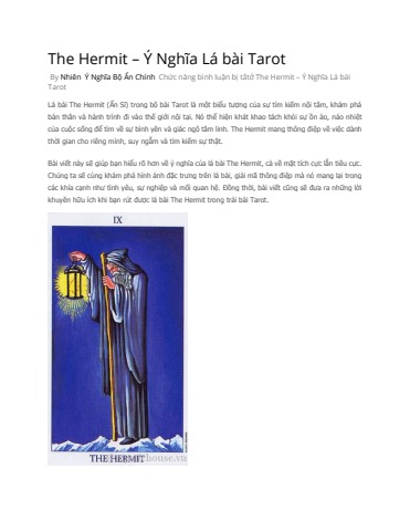 The Hermit – Ý Nghĩa Lá bài Tarot