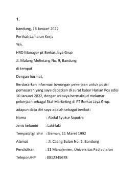 CONTOH SURAT LAMARAN KERJA