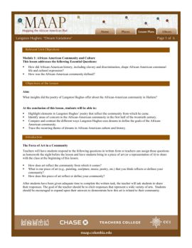 Langston Hughes: “Dream Variations” Page 2 of 6 Instructional Procedures Step One: The Community of Langston Hughes