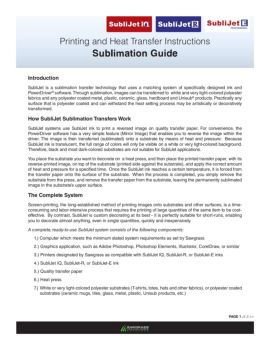 Printing and Heat Transfer Instructions Sublimation Guide PAGE 1 of 3 >> Introduction SubliJet is a sublimation transfer technology that uses a matching system of ...