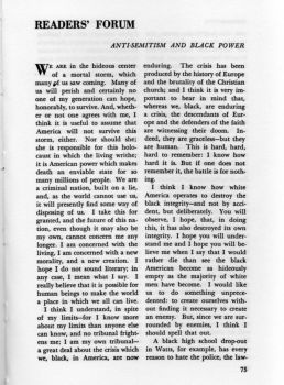 READERS' FORUM ANTI-SEMITISM AND BLACK POWER E ARE in the hideous center of a mortal storm, which many 9f us saw coming. Many of us will perish and certainly no