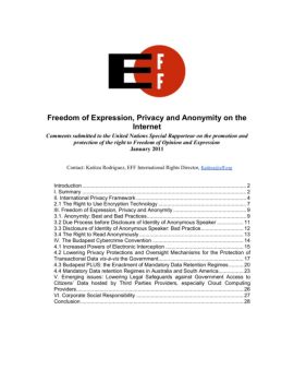 Freedom of Expression, Privacy and Anonymity on the Internet