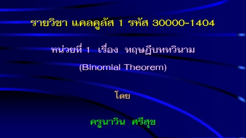 หน่วยที่ 1 ทฤษฎีบททวินาม