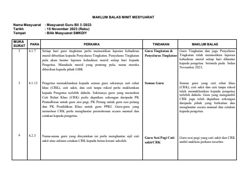 MAKLUMBALAS MINIT MESYUARAT GURU BIL.3