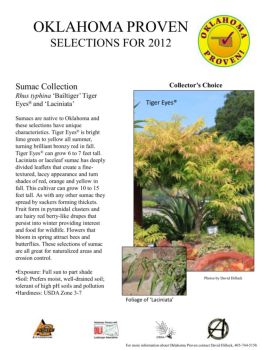 OKLAHOMA PROVEN SELECTIONS FOR 2012 Sumac Collection Rhus typhina ‘Bailtiger’ Tiger Eyes® and ‘Laciniata’ Sumacs are native to Oklahoma and
