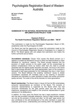 Psychologists Registration Board of Western Australia Mr Trevor G Hoddy PO Box 263 Registrar West Perth WA 6872 Mrs Kim Firth 15 Rh eola S tr Assistant Registrar West ...
