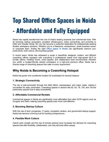 Top Shared Office Spaces in Noida - Affordable and Fully Equipped