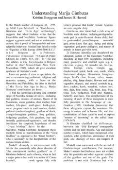 Understanding Marija Gimbutas Kristina Berggren and James B. Harrod In the March number of Antiquity 69, 1995, pp. 74-86, Lynn Meskell in “Goddesses,