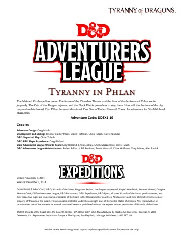 (DDEX01-10) Adventurers League: Expeditions: Ch. 1 Vol. 10: Tyranny in Phlan