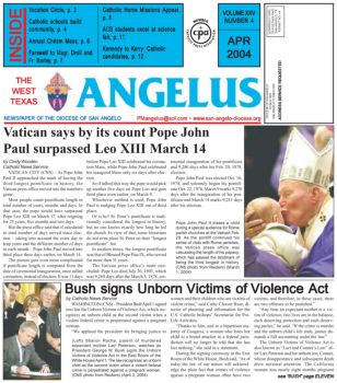 INSIDE V NUMBER 4 OLUME XXV APR 2004 NEWSPAPER OF THE DIOCESE OF SAN ANGELO