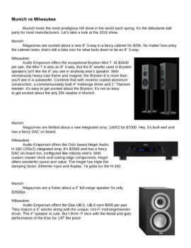 Munich vs Milwaukee Munich hosts the most prodigious hifi show in the world each spring. It's the débutante ball party for most manufacturers.