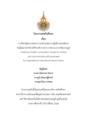 คู่มือการสนทนาภาษาอังกฤษในการปฏิบัติงานและสื่อสาร กับผู้โดยสารสำหรับนักศึกษาฝึกงานท่าอากาศยานนานาชาติสุวรรณภูมิ