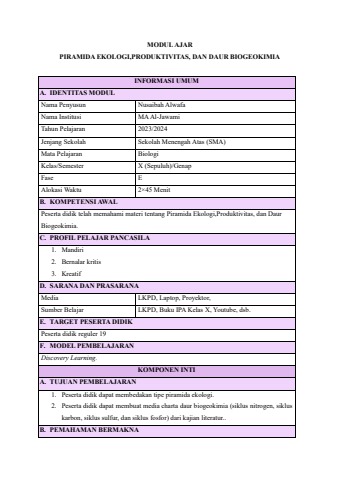 Modul Ajar Piramida Ekolog, Produktivitas, dan Daur Biogeokimia
