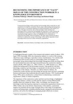 RECOGNISING THE IMPORTANCE OF “TACIT” SKILLS OF THE ...