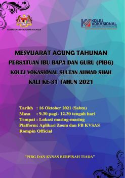 MESYUARAT AGUNG TAHUNAN PERSATUAN IBU BAPA DAN GURU (PIBG) KOLEJ VOKASIONAL SULTAN AHMAD SHAH KALI KE-31 TAHUN 2021