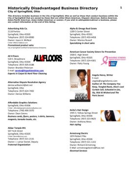 Historically Disadvantaged Business Directory City of Springfield, Ohio This directory includes business in the City of Springfield, Ohio as well as those that ...
