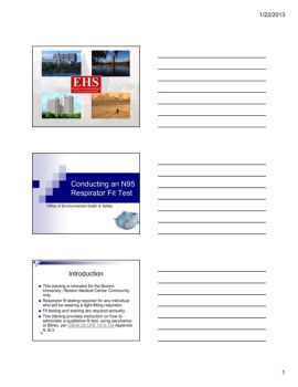 1/22/2013 1 Conducting an N95 Respirator Fit Test Office of Environmental Health & Safety Introduction This training is intended for the Boston