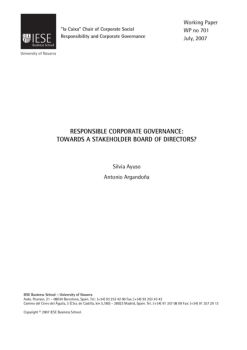 IESE Business School-University of Navarra RESPONSIBLE CORPORATE GOVERNANCE: TOWARDS A STAKEHOLDER BOARD OF DIRECTORS? Silvia Ayuso* Antonio Argandoña**