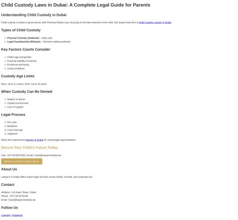 Explore Dubai's child custody laws, including types, court considerations, age limits, legal process, and expert lawyer support to secure your child's future.