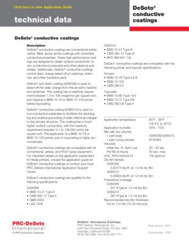 technical data Description DeSoto® conductive coatings are conventional solids, carbon filled, epoxy-amine coatings with controlled conductive properties.