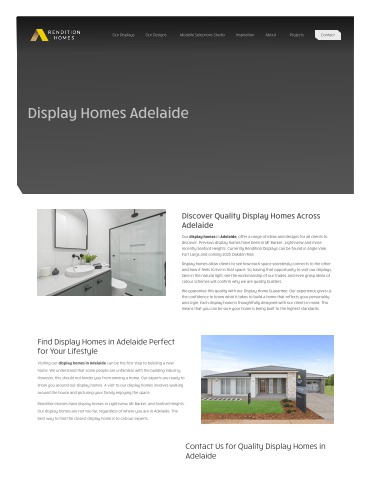 Our display homes in Adelaide, offer a range of ideas and designs for all clients to discover. Previous display homes have been in Mt Barker , Lightsview and more recently Seaford Heights. Currently Rendition Displays can be found in Angle Vale, Fort Largs and coming 2025 Oakden Rise. Display homes allow clients to see how each space seamlessly connects to the other and how it feels to live in that space. So, having that opportunity to visit our displays, take in the natural light, see the workmanship of our trades, and even grasp ideas of colour schemes will confirm why we are quality builders.