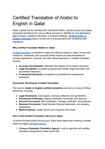 Certified Translation of Arabic to English in Qatar