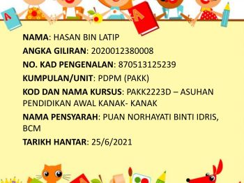 Kerja Kursus Asuhan Pendidikan Awal kanak- Kanak (kesihatan,pemakanan, keselamatan,latihan urus diri)