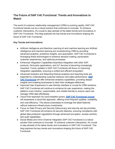 The Future of SAP C4C Functional: Trends and Innovations to Watch