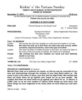 1 Kirkin’ o’ the Tartans Sunday TWENTY-SIXTH SUNDAY AFTER PENTECOST ORDER OF WORSHIP November 17, 2013 10:30 a.m. As the prelude begins, let us silently prepare ...