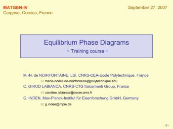 -1-Equilibrium Phase Diagrams-Training course -M.-N. de NOIRFONTAINE, LSI, CNRS-CEA-Ecole Polytechnique, France