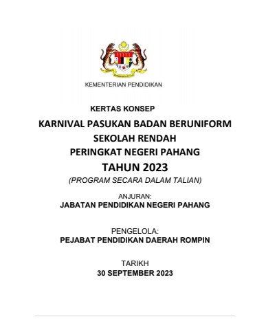 KERTAS KERJA KARNIVAL PBB SEKOLAH RENDAH PERINGKAT NEGERI PAHANG 2023