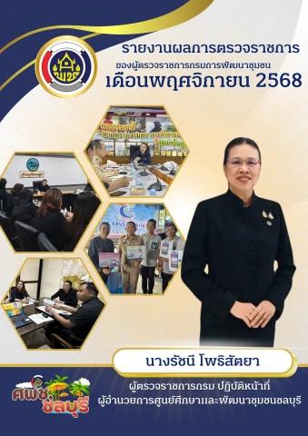 รายงานผลการตรวจราชการ ประจำเดือนพฤศจิกายน 2568 ของศูนย์ศึกษาและพัฒนาชุมชนชลบุรี ซึ่งรับผิดชอบพื้นที่การตรวจราชการในพื้นที่ให้บริการ ของศูนย์ศึกษาและพัฒนาชุมชนชลบุรี ได้แก่ จังหวัดชลบุรี จันทบุรี ฉะเชิงเทรา ระยอง ตราด สมุทรปราการ และจังหวัดสระแก้ว