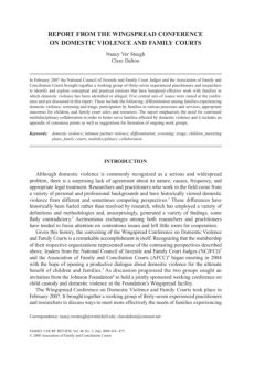Ver Steegh and Dalton/REPORT FROM THE WINGSPREAD CONFERENCE 455 domestic violence. The participants included members of the domestic violence advocacy