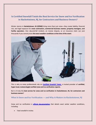 Is Certified Snowfall Totals the Best Service for Snow and Ice Verification in Hackettstown, NJ, for Contractors and Business Owners