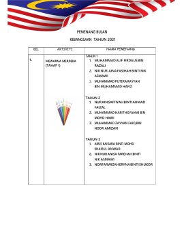 Senarai nama pemenang bagi pertandingan Bulan Kebangsaan SKBB Tahun 2021