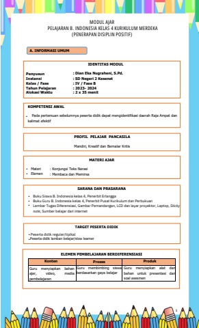Merupakan contoh modul ajar untuk kelas IV SD. Modul ajar ini menggunakan