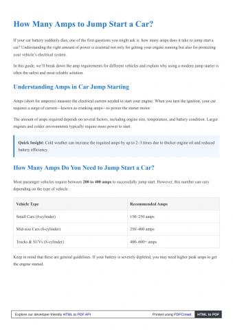 In this guide, we'll break down the amp requirements for different vehicles and explain why using a modern jump starter is often the safest and most reliable solution.