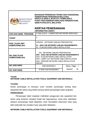 K1 : ANALYSE NETWORK CABLING REQUIREMENTS [KSK2033/P(6/7)]