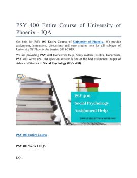 Are you looking for the PSY 400 Entire Course Help service? Then you are at right place, Just Question Answer provides the best and professional Psychology Assignment Help service. Acquire the best and reliable Assignment Help service today, just click here: -