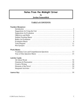 © 2006 Teacher TimeSavers 1 Notes From the Midnight Driver by Jordan Sonnenblick TABLE of CONTENTS Teachers Resources: Introduction ...