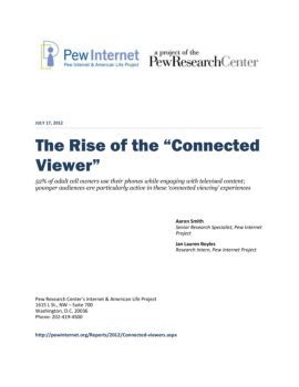 JULY 17, 2012 The Rise of the “Connected Viewer” 52% of adult cell owners use their phones while engaging with televised content; younger audiences are ...