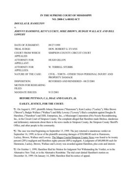 in the supreme court of mississippi no. 2000-ca-00102-sct douglas b. hamilton v. johnny hammons, kent luckey, mike brown, budgie wallace and bill
