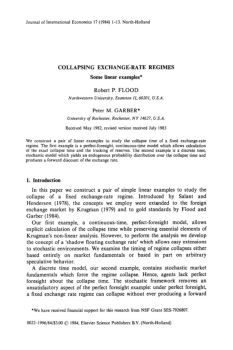 R.P. Flood and P.M. Garher, Collapsing exchange-rate regimes 3 supply equals the book value of international reserves plus domestic credit.