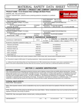 May 10, 2007 FLASH POINT (METHOD USED) LEL: UEL: Rapidly burning in fire-related environment >300° F MATERIAL SAFETY DATA SHEET Page 2 of 4