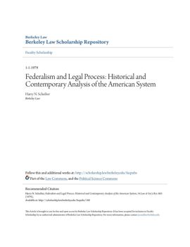 FEDERALISM AND LEGAL PROCESS: HISTORICAL AND CONTEMPORARY ANALYSIS OF THE AMERICAN SYSTEM HARRY N. SCHEIBER Whether federalism is more than a legal fiction is a ...