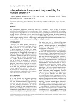 323 Is hypothalamic involvement truly a red flag for multiple sclerosis? Chandra Mohan Sharma MD DM, Alok Jain MD, DM, BL Kumawat MD DM, Dinesh