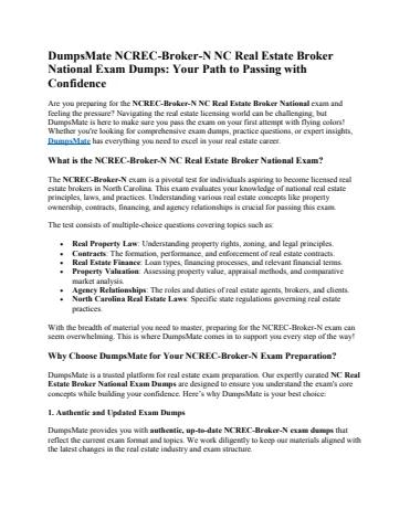 DumpsMate NCREC-Broker-N NC Real Estate Broker National Exam Dumps: Your Path to Passing with Confidence