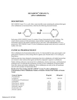 SILVADENE ® CREAM 1% (silver sulfadiazine) DESCRIPTION SILVADENE Cream 1% is a soft, white, water-miscible cream containing the antimicrobial agent